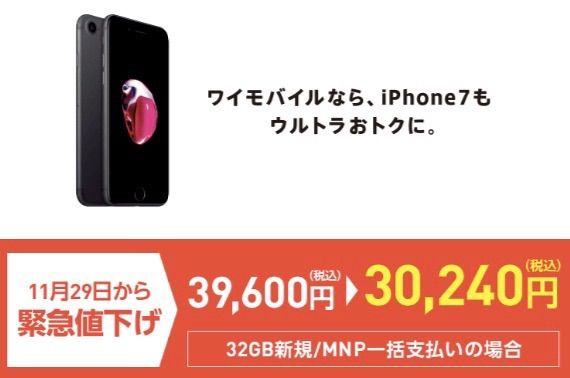 [緊急値下げ]ワイモバイルのiPhone 7が激安の3万円に値下げ!お子さん用のスマホ探している方は要チェックですよ!