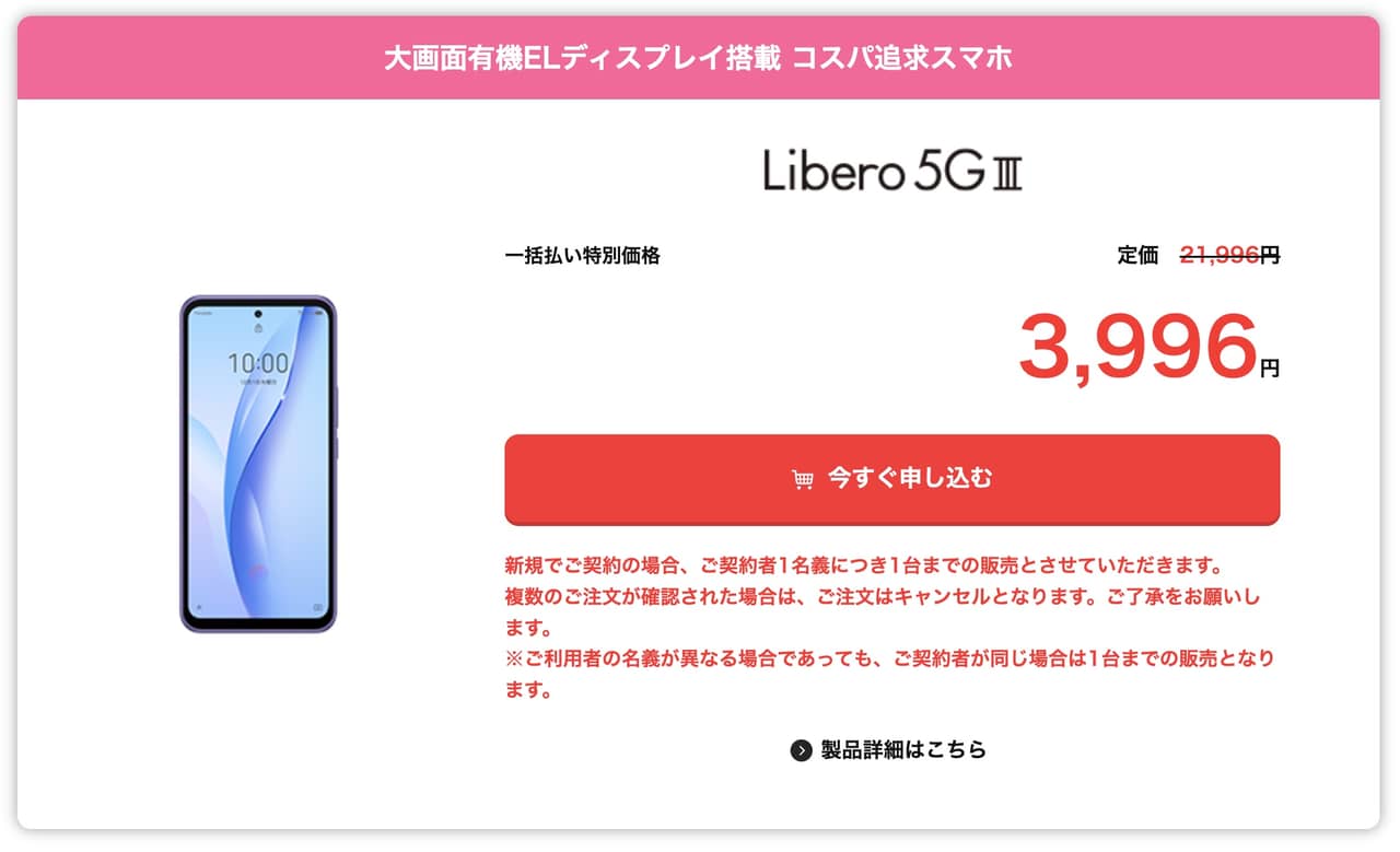 で、定価25,920円のところGWセールでは半額以下の10,080円に!でも、紹介しておいてアレですが、ぶっちゃけLibero 5G Ⅲのほうがおすすめです(笑)