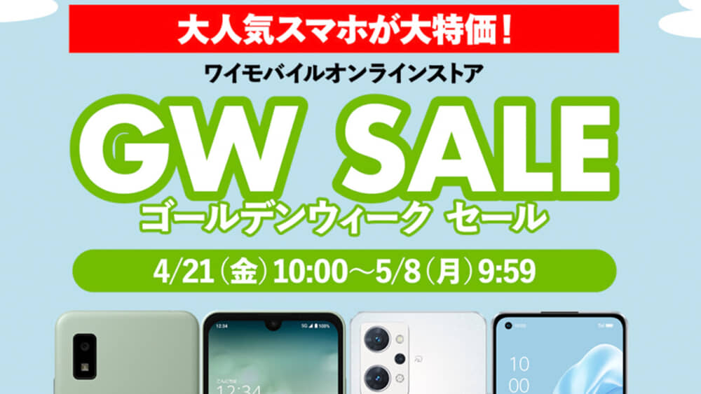ワイモバイルでゴールデンウィークセールを開催中ですよ!新規も乗り換えもスマホを安く購入できるので、このタイミングで新しいスマホも手に入れましょう!