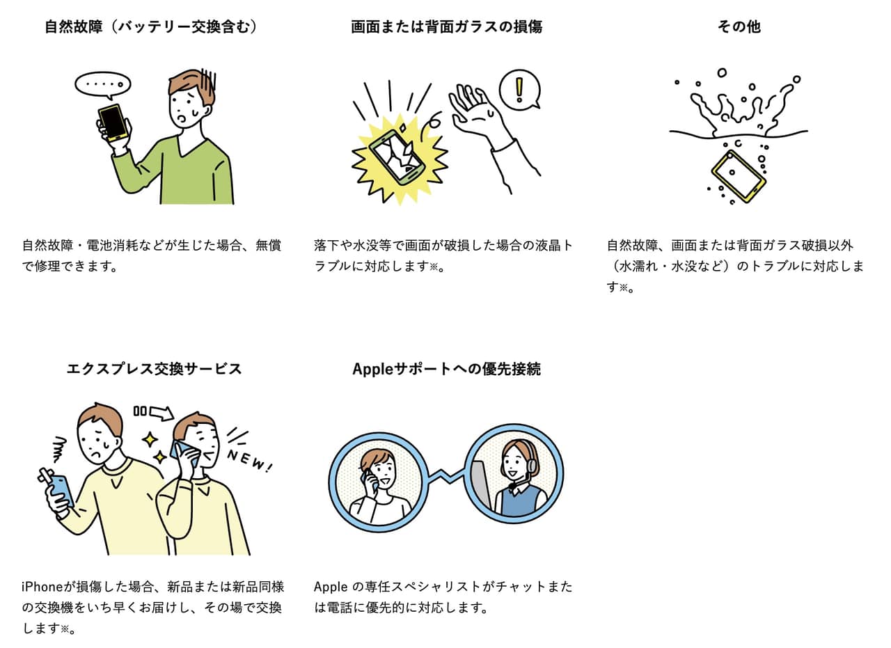 本サービスはAppleの「AppleCare Service」に加え「ワイモバイルオリジナルサービス」が含まれている点がウリ。