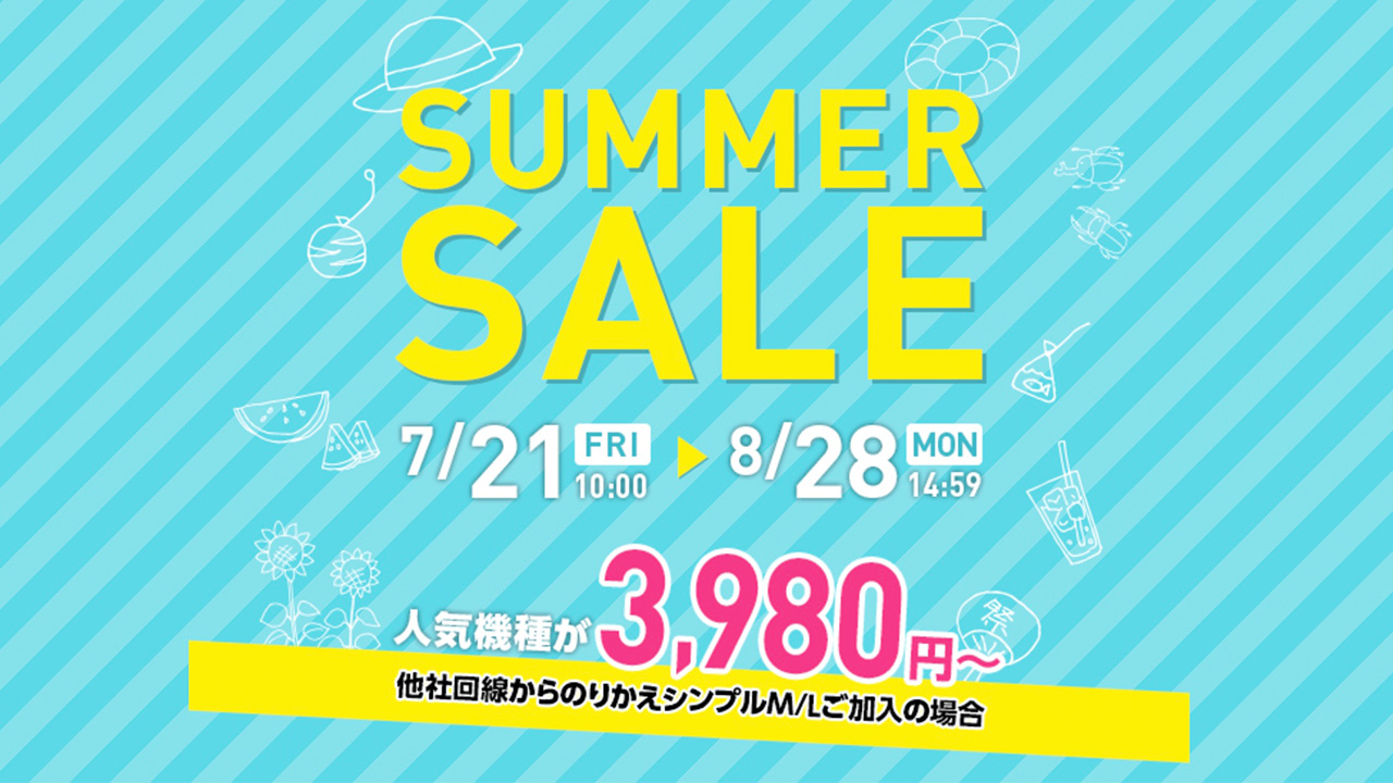 ワイモバイルが7月21日から8月28日の期間限定でサマーセールを開催していますよ!