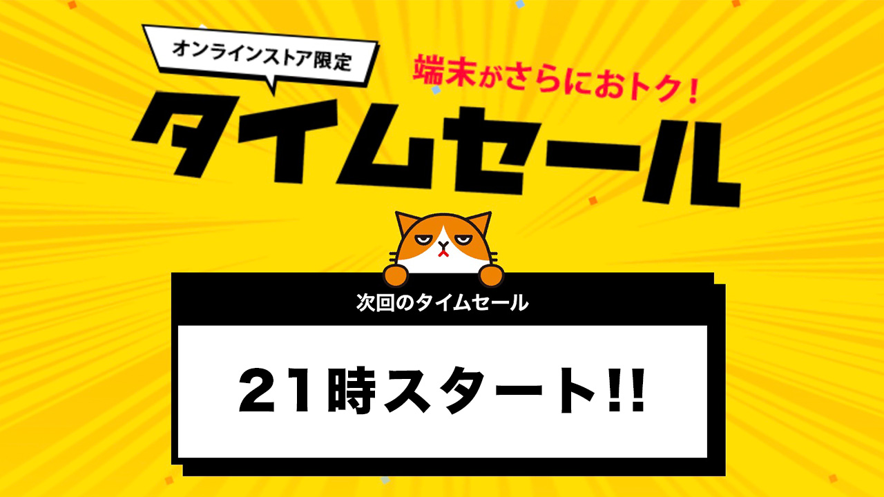 ワイモバイルでは21時から翌9時までスマホが安くなるタイムセールが毎日行われている。スマホ買うならタイムセール時がおすすめ。