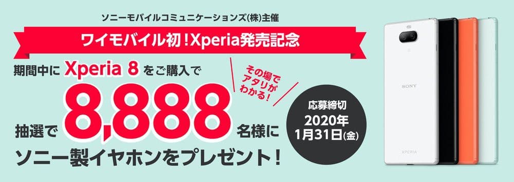 ワイモバイルはXperia 8の取り扱いにともない、お得なセールを実施しています。