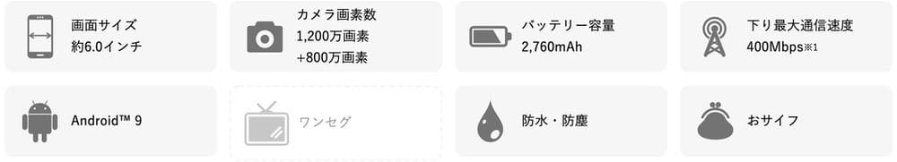 バッテリー容量は2,760mAhとやや少なめですが、バッテリーを長持ちさせる「STAMINA®モード」など、電池持ちを良くする仕組みが取り入れられています。その他IP68の防水防塵・おサイフケータイにも対応しております。