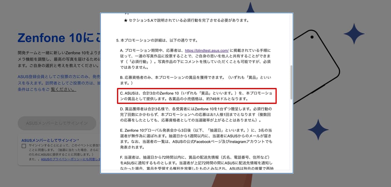 投稿したユーザーは発売後にZenfone 10を無料で獲得するチャンスが与えられるとのことで、気になる人はチェックしてみよう。