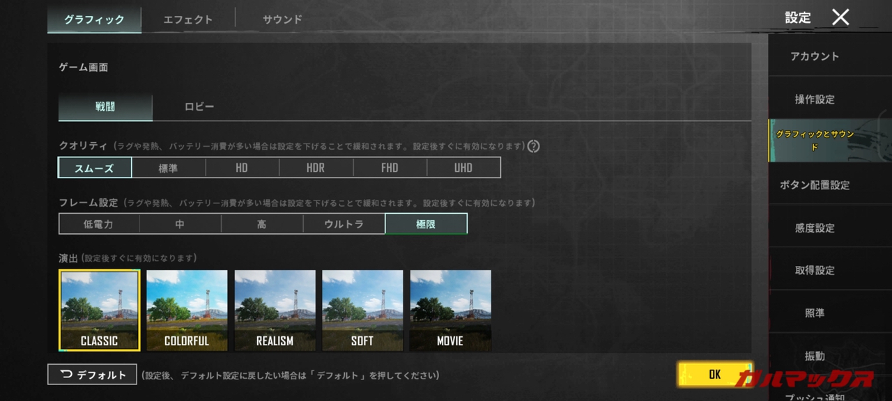 ▼何故かスムーズ+極限(60FPS)が上限でした。↓