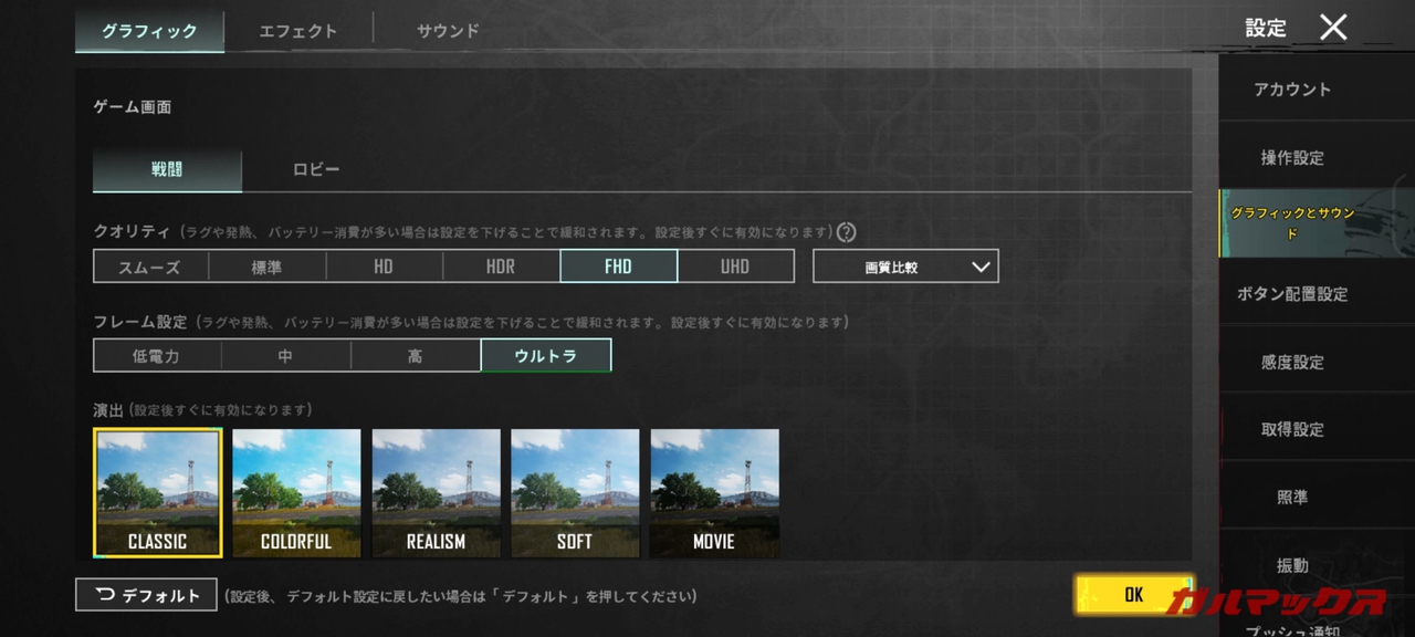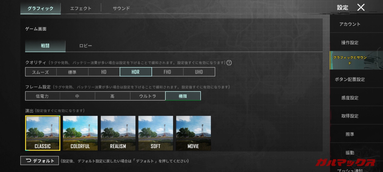 まずはPUBGモバイル。このゲームは90FPSに対応しているので90Hz表示が可能なZenfone 10は条件をクリアしているはずですが・・・
