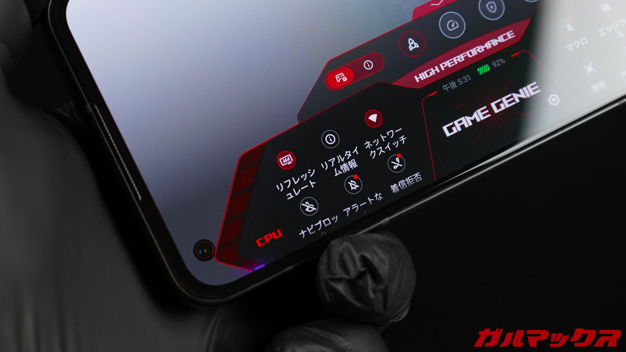 Zenfone 10はディスプレイも進化。前モデルでは最大120Hzの高リフレッシュレートに対応していましたが、Zenfone 10では最大144Hzにアップしました。が、ちょっとクセがあって、通常は最大120Hz、ゲーム時のみゲームパネルから144Hzへ切り替えられるようになってます。利用できるシーンはかなり限定的な印象ですね。