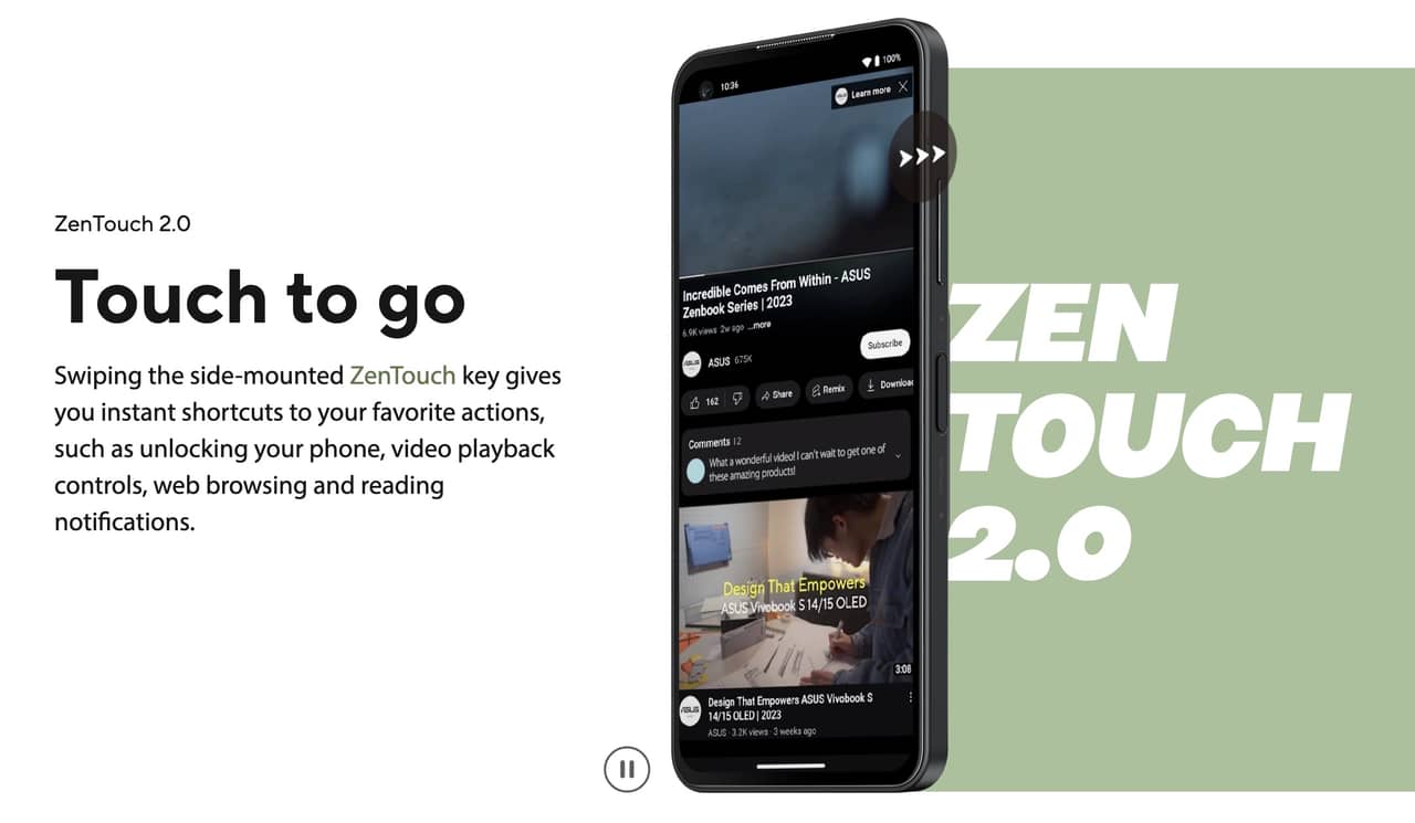 ▼機能面では指紋センサー付き電源ボタンを利用したスワイプ操作が行えるZenTouch 2.0に対応!スワイプするだけでビデオ再生のコントロールや通知の閲覧などが行えるようになっています!↓
