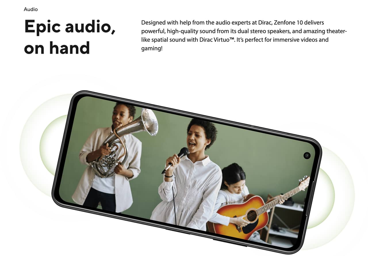 ▼小型ながらスピーカーはしっかりステレオを搭載!Dirac Virtuoにより劇場のような空間サンドを楽しめるのだとか!また、イヤホンジャックも搭載していますよ!↓