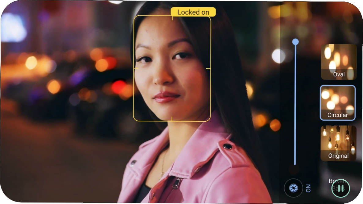 ▼AIを用いてターゲット以外をぼかすポートレートビデオ機能。↓