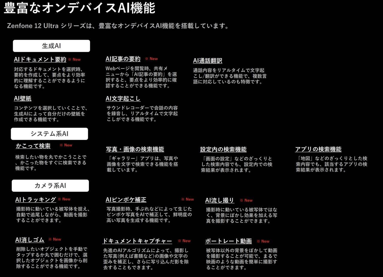 AI系機能の拡充が待たれていたZenfoneでしたが、Zenfone 12 Ultraで他社にも引けを取らないほど機能が充実したのはZenfoneファンは嬉しいポイントかと。
