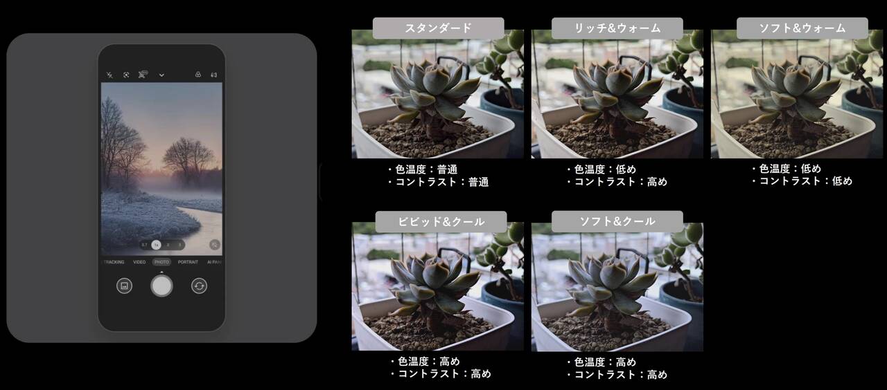 ▼画作りのためのカラーモード「Photo Vibe」も搭載。iPhoneのフォトグラスタイルのようにカラー選択後の追い込み調整はできませんが、簡単にイメージを変えられるので楽しい機能の一つでした。↓