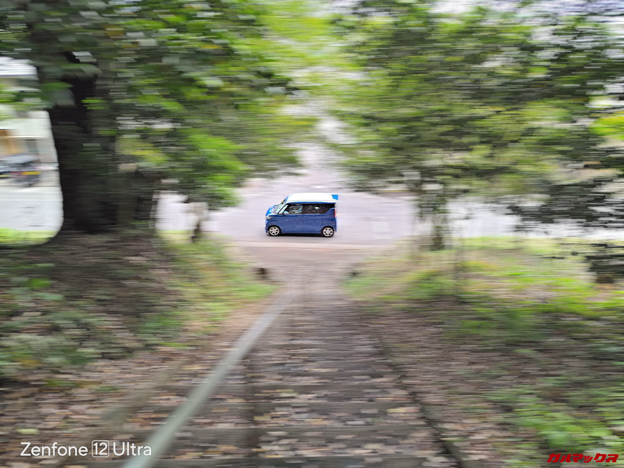 ▼AI流し撮りモードは被写体を追いかけながらシャッターを切るので、以下のような周囲の風景をフレーム化して中央にピンポイントで狙う撮影は結構難しいですねぇ。撮影後はフォトアプリから流し撮り効果の強度を調整できますよ!↓