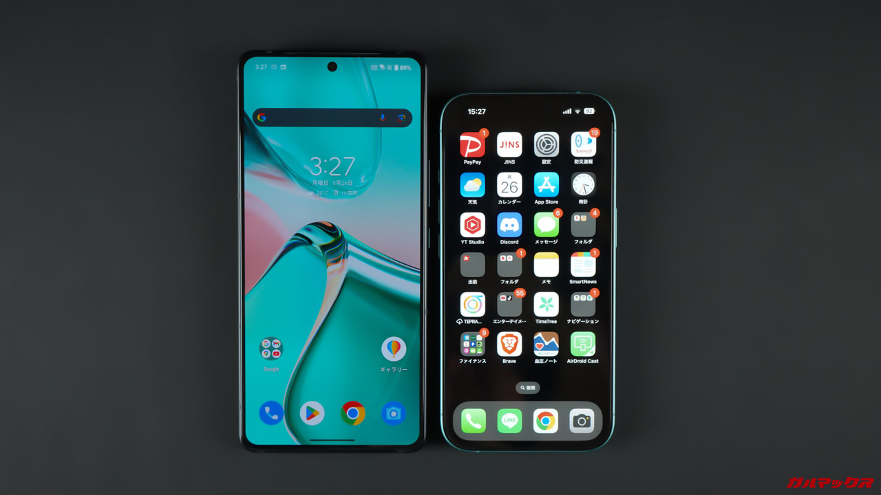 ▼サイズをiPhone 16と比較。小さめのスマホが好きな人には合わないかも。↓