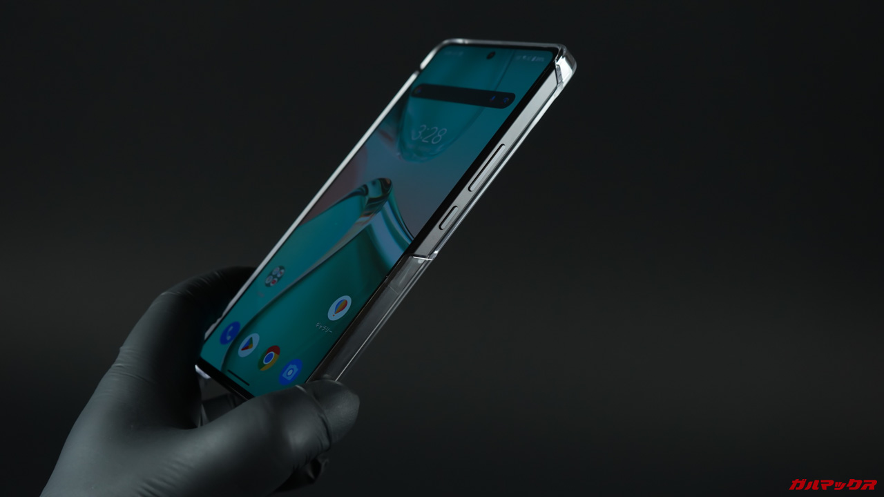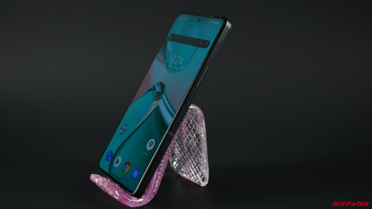 全体的なサイズ感は大型といった印象が強く、ディスプレイサイズは6.78インチで重量は220gとズッシリしているので大きなスマホが好き!という人向けかと。このあたりは好みで分かれる部分なので購入前にサイズが合うモデルか確認しておきましょう。