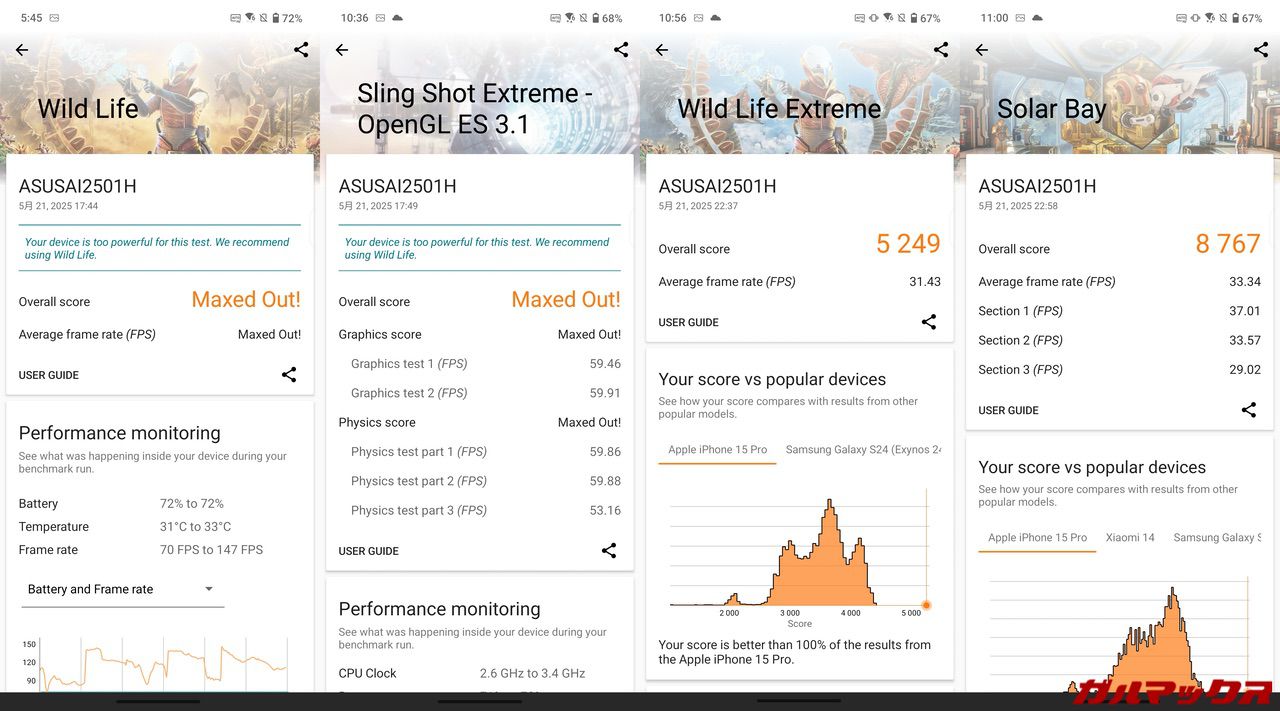 ▼まずは以前レビューしたASUSのゲーミングスマホ「ROG Phone 9」の結果を見てみて下さい。↓