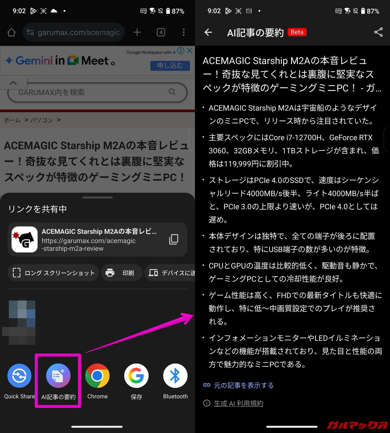 上の画像の通り色々なAI機能を搭載しているんですが、個人的に使ってみて良かったのは”AI記事の要約”ですね!