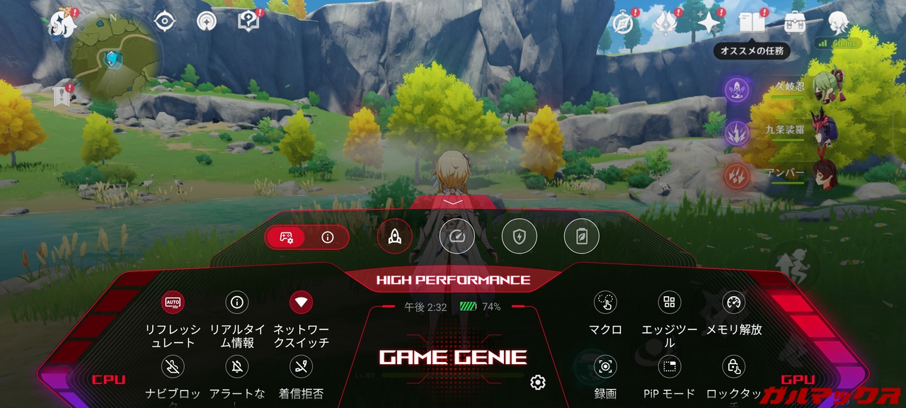 ゲーム画面上でフレームレートなどを確認できるリアルタイム情報表示、スーパープレイが出来た時に30秒前に遡って録画できるショートクリップ、ワンタップで複雑な操作ができるマクロ、FPSで消えないレティクルを表示できるクロスヘアなどなど、沢山のゲーミング機能を使うことができます!Good!