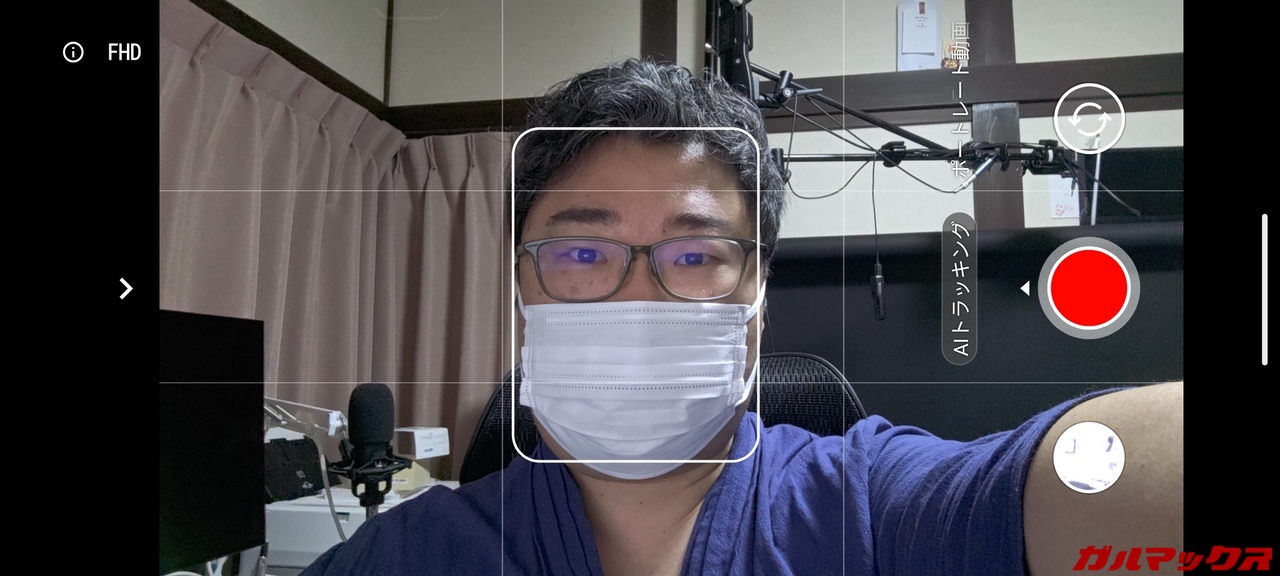 気になっていたAIトラッキングも試してみます!この撮影モードではロックした被写体を画面の中央に自動配置、ズームイン/アウトも自動で行ってくれます。アウトカメラでもインカメラでも利用できるのが良いですねぇ。