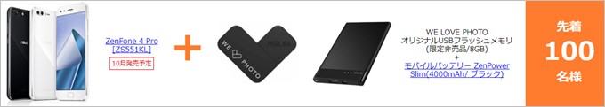 先行予約キャンペーンで非売品のUSBメモリ、4000mAhのモバイルバッテリー(ZenPower Slim)が貰えます。