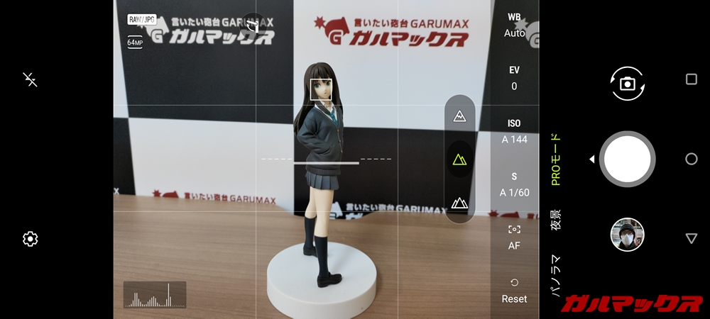 Zenfone 7はプロモードであれば、保存形式にRAWを指定することができます(1回の撮影で通常のJPGとRAWの2枚が出力される)。