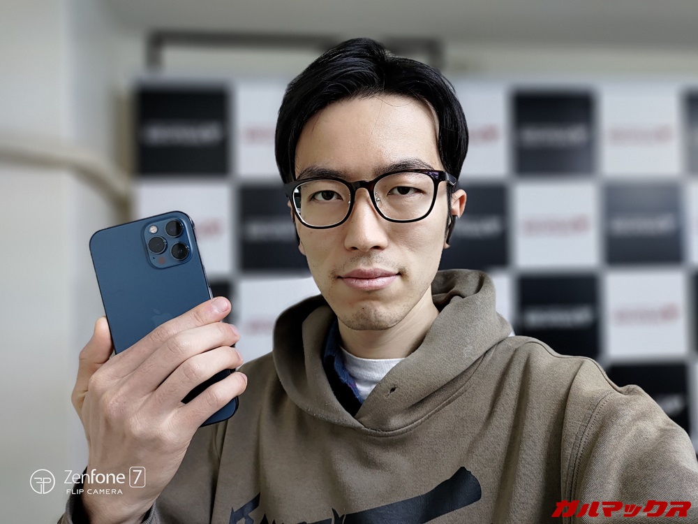 ▼Zenfone 7はアウトカメラをインカメラに転用できるため、インカメラは非搭載となっています。言い換えれば、高い性能のアウトカメラでそのまま自撮りを行えるんで、自撮り品質は全スマホでも最高クラス。↓