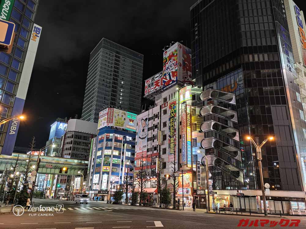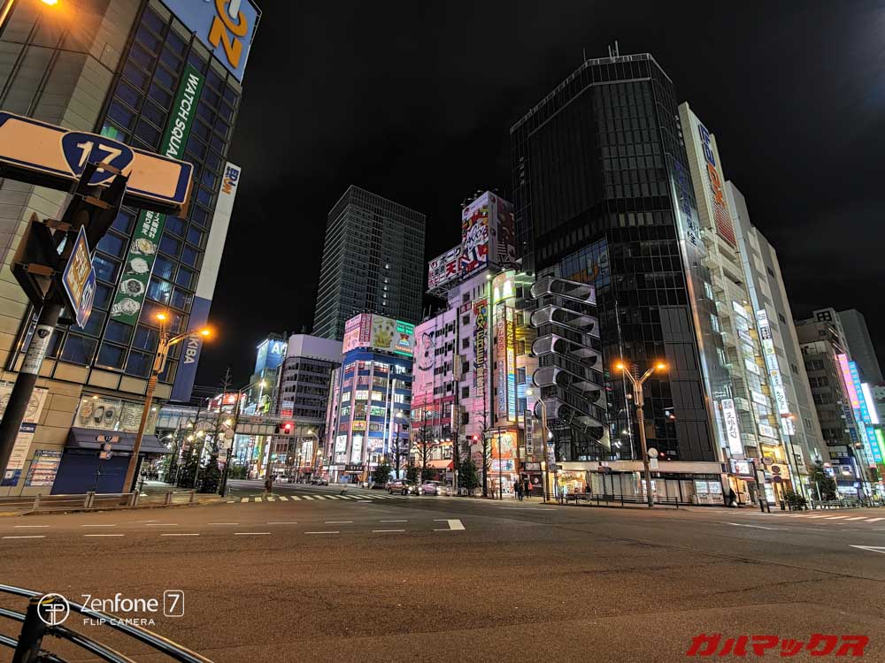 ▼ZenFone 7は非常に明るく鮮明に撮影できた。中央付近上部の光る文字看板もZenFone 7はよりシャッキリと捉えることが出来ており、個人的にはiPhone 12 Pro Maxよりも長けていると感じる画質だった。左がZenFone 7、右がiPhone 12 Pro Max。↓