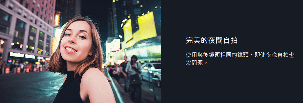 ▼メイン、超広角撮影はもちろん夜景撮影もバッチリ!自撮り撮影性能は反則レベルの高クオリティが期待できますね!セルフィーユーザーさんも大満足しそう。↓
