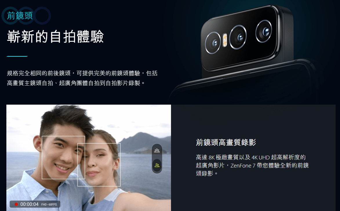 ▼背面カメラを回転してインカメラにまるまる転用できるのも魅力。他スマホでは真似できない、Zenfone 7 / 7 Pro(と先代のZenfone 6)だけの芸当です。↓