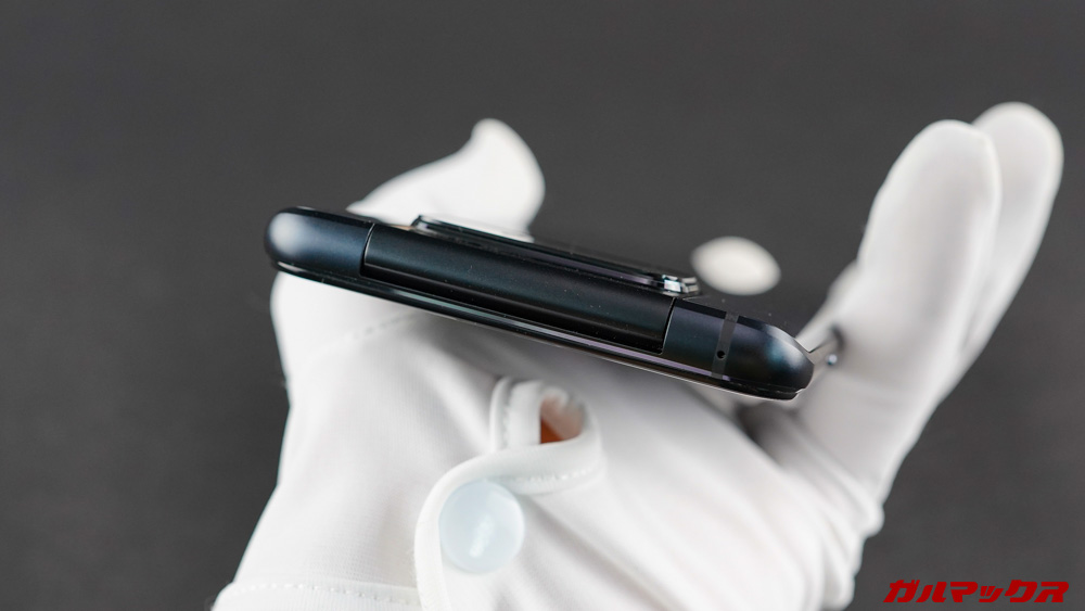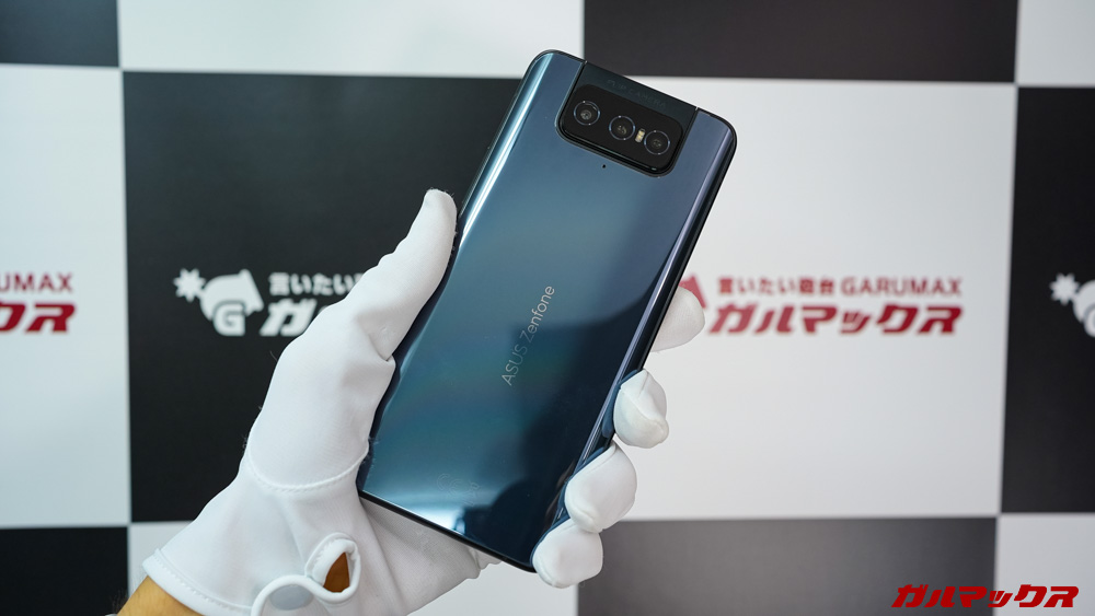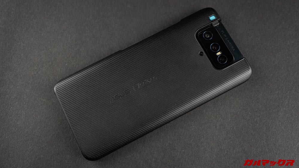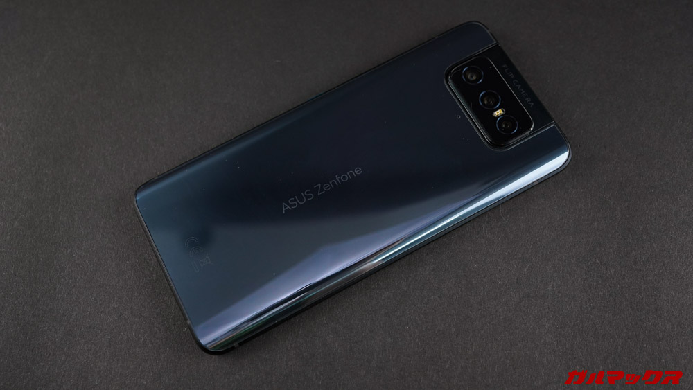 Zenfone 8 Flipの質感はツルツルなタイプ。カラーはブラックとなります。