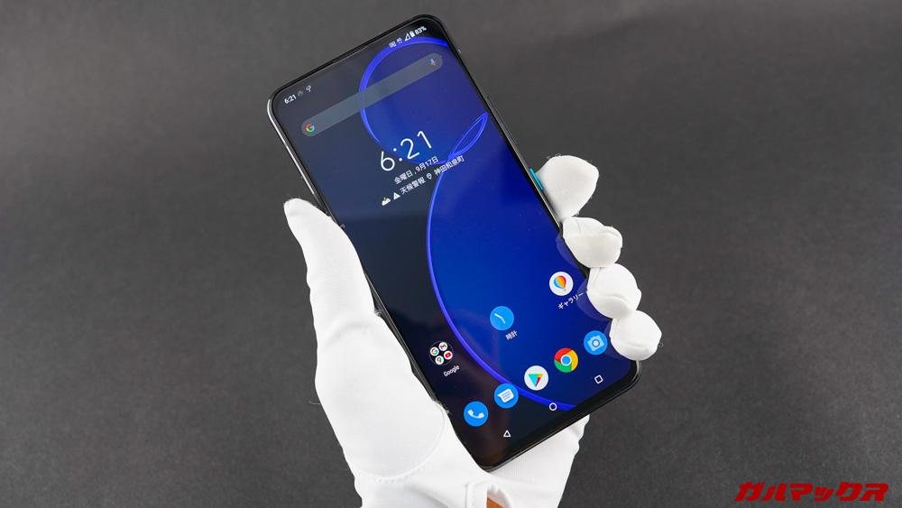 長いことパンチホールスマホを触ってきた筆者としては非常に新鮮。しかも材質は高級なテレビに使われる有機EL。ノッチなしで表示が綺麗ゆえにZenfone 8 Flipを起動するたびにニンマリしちゃうぜ。
