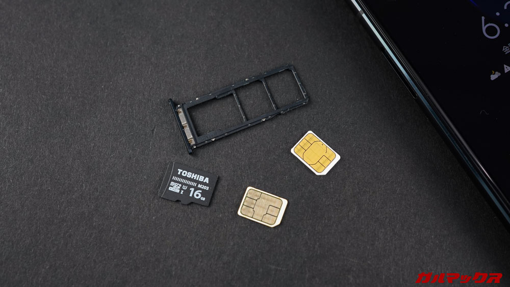 ▼またZenfone 8 FlipはデュアルSIM対応、それに加えてSDカードの併用ができるトリプル式スロットを搭載しているのもナイスな部分!ハイエンドで搭載しているのは極めて珍しいんですよね。気兼ねなくSDカードとデュアルSIMを使っていけますぞ。↓