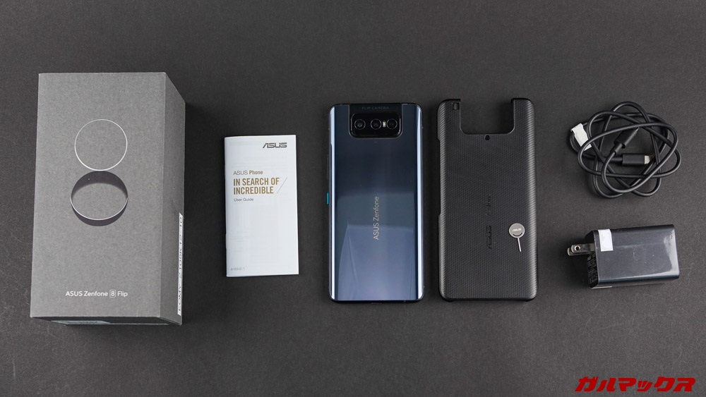 Zenfone 8 Flipは標準でケースが付属していますが、画面やカメラを保護するフィルムは付属していません。破損を防ぐ意味でも買ったらフィルムを早めに調達しておきたいところです。
