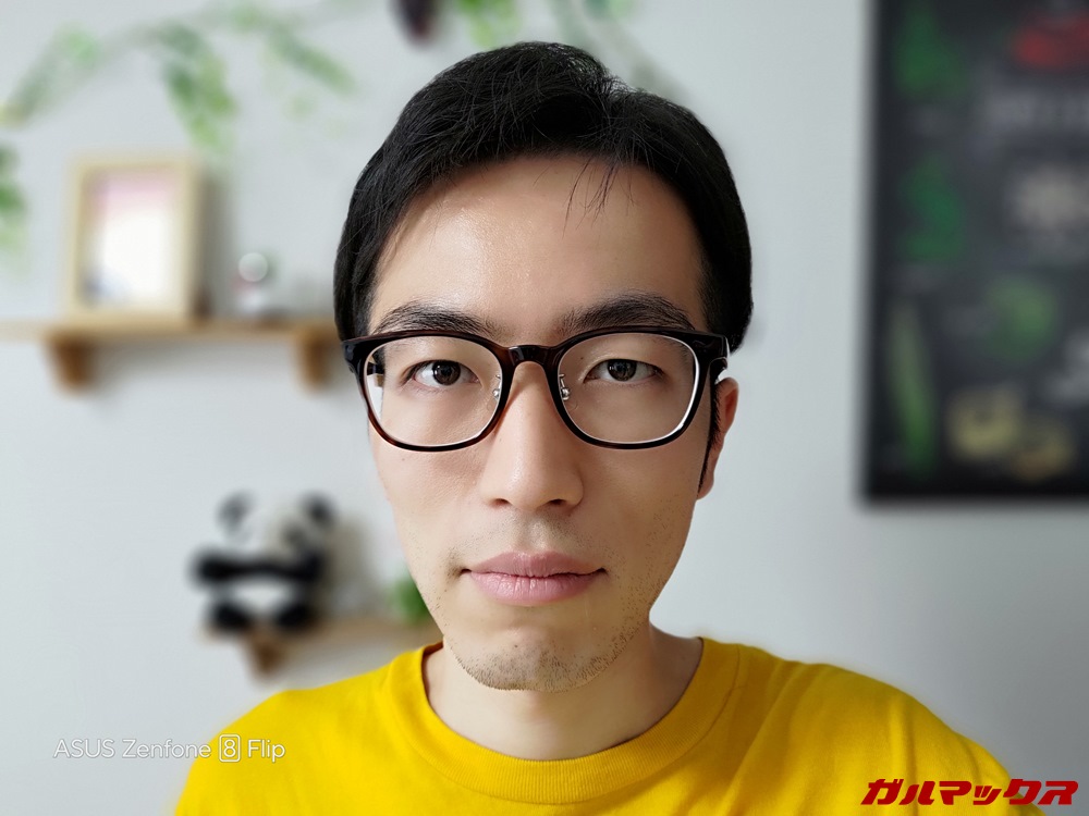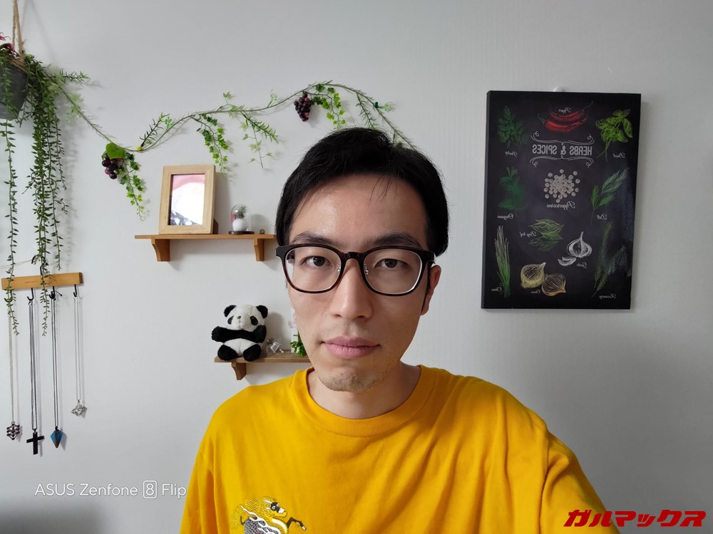▼当然ながら超広角の自撮りにも対応しています!自撮りで超広角が撮れるスマホは希少。部屋ん中で撮影していますが、外なら友達と一緒に撮ったり風景をメインにして撮ったりと可能性は広がるんで実に楽しいもんですよ。↓