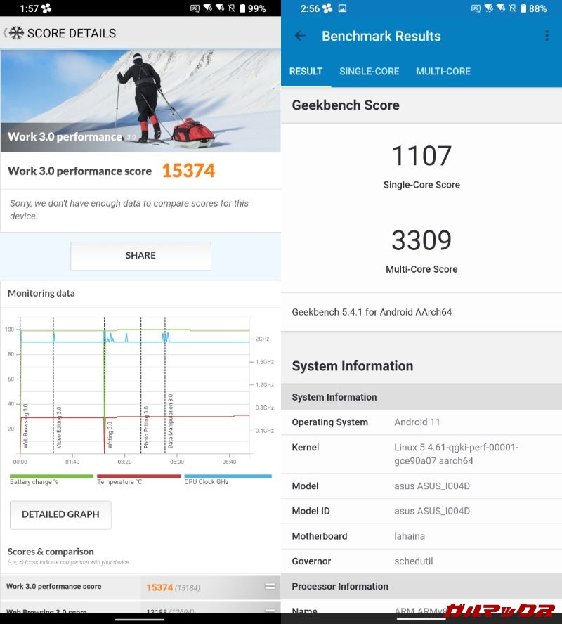 Zenfone 8 FlipのSoCはSnapdragon 888です。端末の処理性能を数値化するベンチマークをチェックしてみましょう。