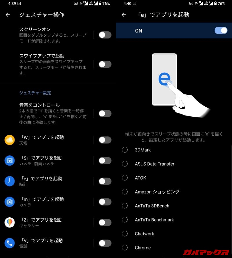 ▼スマートキーに並んで便利なのがジェスチャー操作。スリープ時にアルファベットや不等号記号を指で描くと、それに対応したショートカット、音楽コントロールができてとても便利!↓