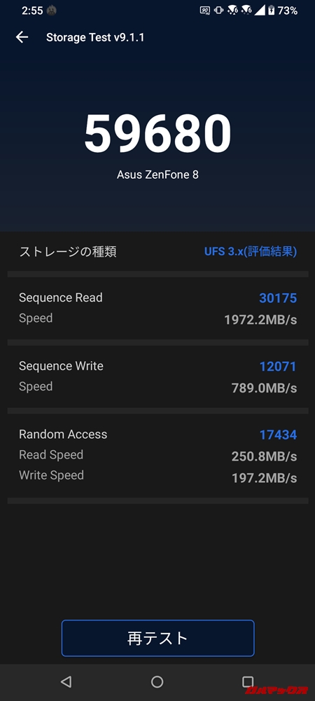 ▼ストレージ速度は読み込みが1,972MB/s、書き込みが789MB/s。ハイエンドだけあって速さはバッチリ!実際にファイルをPCから取り込む時もファイルの整理もサクサクっす。↓