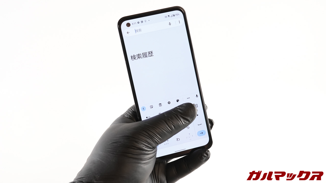片手操作を重視するならバンカーリングを取り付けたいところですが、本体背面も付属保護ケースも背面がザラザラしていて粘着固定系アイテムはくっつきづらいので注意。粘着固定のアクセサリーを利用する場合はツルツルした素材のケースが必要ですね。