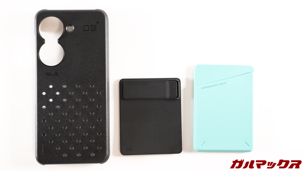 Zenfone 9 Connex Accessoriesは便利なアクセサリーを3点セットにしたもので、ケース、スマートスタンド、カードホルダーが含まれています。