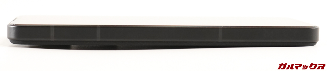 ▼横幅は70mmを切っているので持つととてもスリムに感じます。僕は片手操作で画面上に届きませんが、iPhone 14 Proよりもホールド感が良いので扱いやすいです。↓