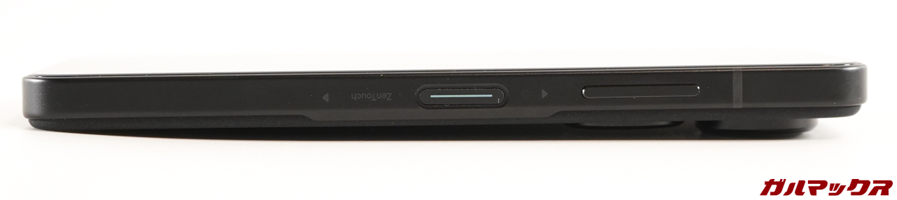 ▼右側面は音量ボタンと指紋センサー付きの電源ボタンと並びます。↓