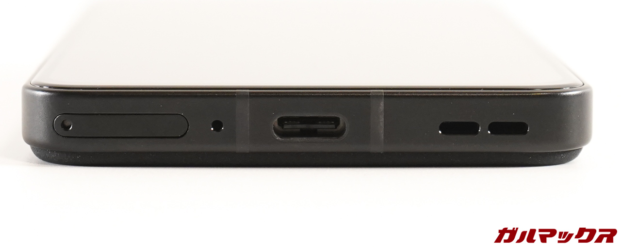 ▼下部はSIMスロット、USB-C、スピーカーが備わってます。なおスピーカーはディスプレイ側の受話口スピーカーと合わせてステレオで駆動します。↓