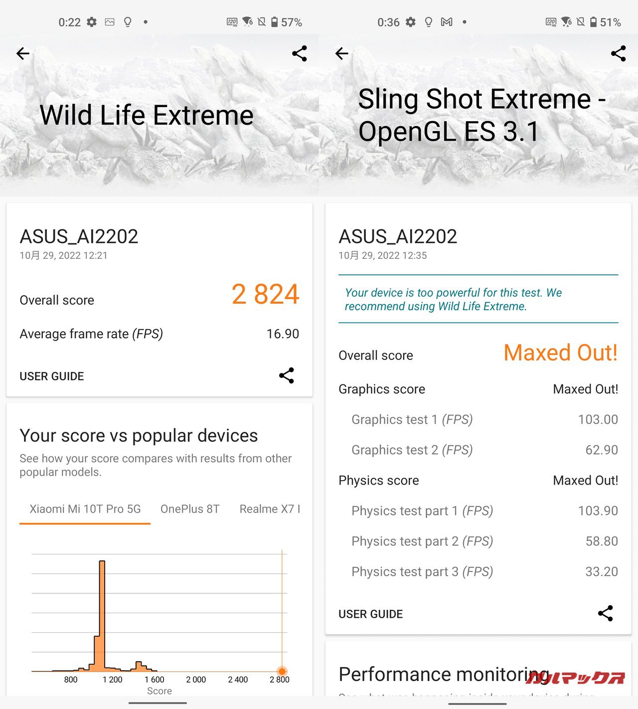 Zenfone 9は執筆時点で世界最高峰のパフォーマンスを誇るSnapdragon 8+ Gen 1を搭載しています。このSoCは同社のゲーミングスマートフォン「ROG Phone 6 / 6 Pro」と同じでものでゲーム性能も非常にパワフルです。