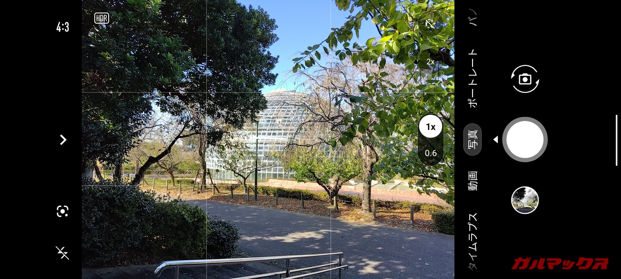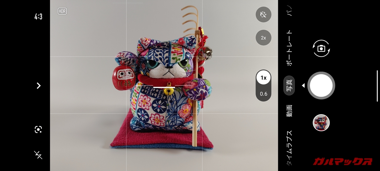 ▼カメラアプリはこんな感じ。0.6倍(超広角)、1倍、2倍は簡単に切り替えられるようになっていて扱いやすいです。2倍以降はピンチ操作でズームを行います。↓