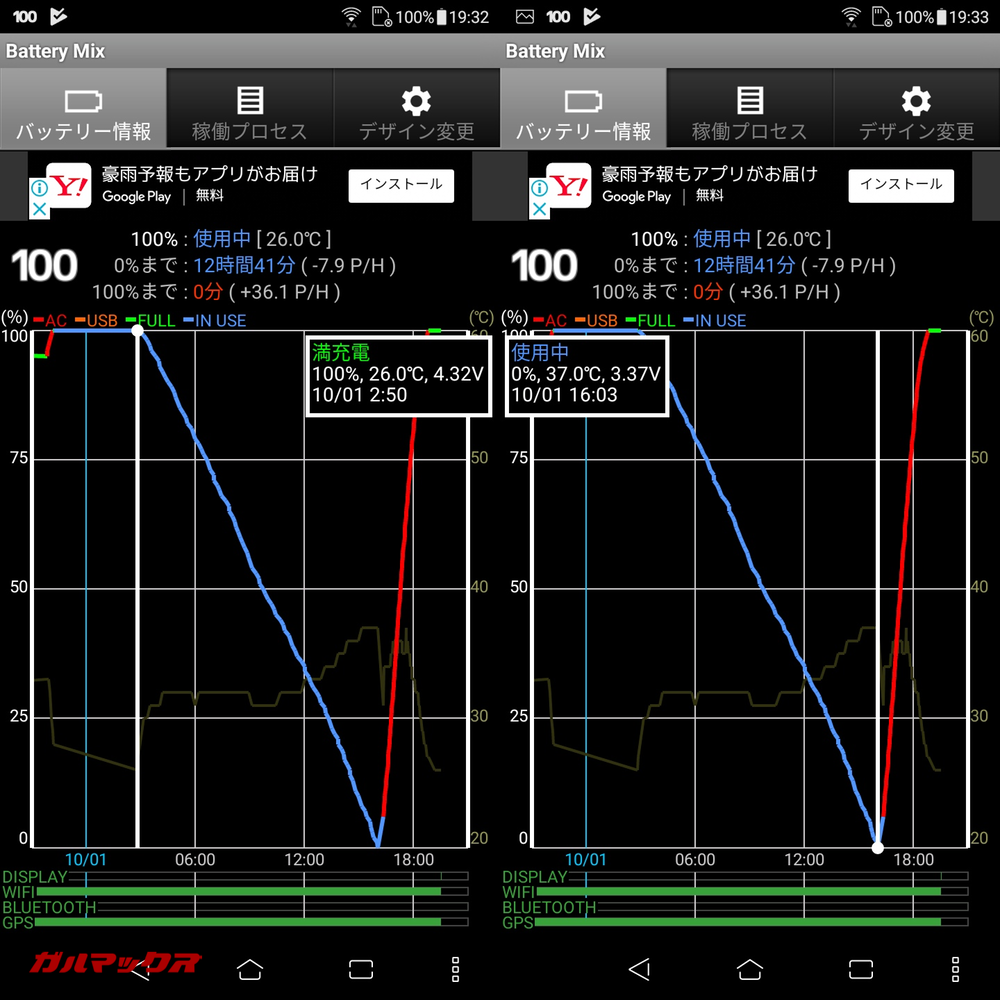 ▼測定開始が2:50、バッテリーが切れたのが16:03で連続駆動時間は13時間13分。一般的な3000mAhクラスのスマホは8時間から9時間前後の駆動時間が平均的なので文句無しのバッテリー持ち。結構ガンガン利用していても十分1日バッテリーが持つレベル。↓