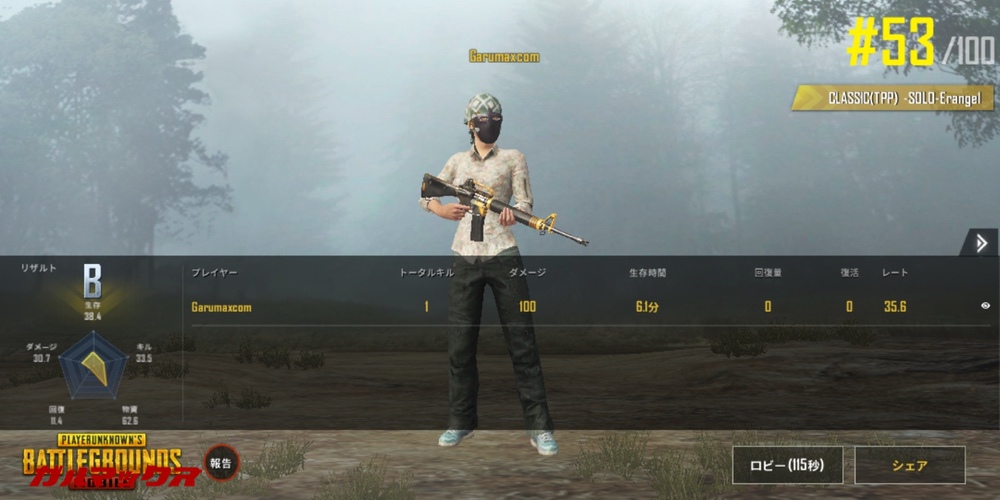 ゲーム性能も高くはありません。ガルマックスでベンチマーク的に利用しているPUBG Mobileで動作を確認してみました。
