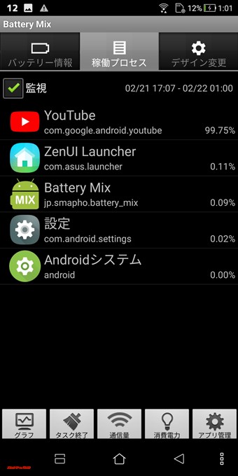 YouTubeと相性が悪くてバッテリーを異常に消費しているのか、それともZenFone Max Plus (M1)自体のソフトウェアが煮詰まっていなくて本来の性能を発揮できていないのか。