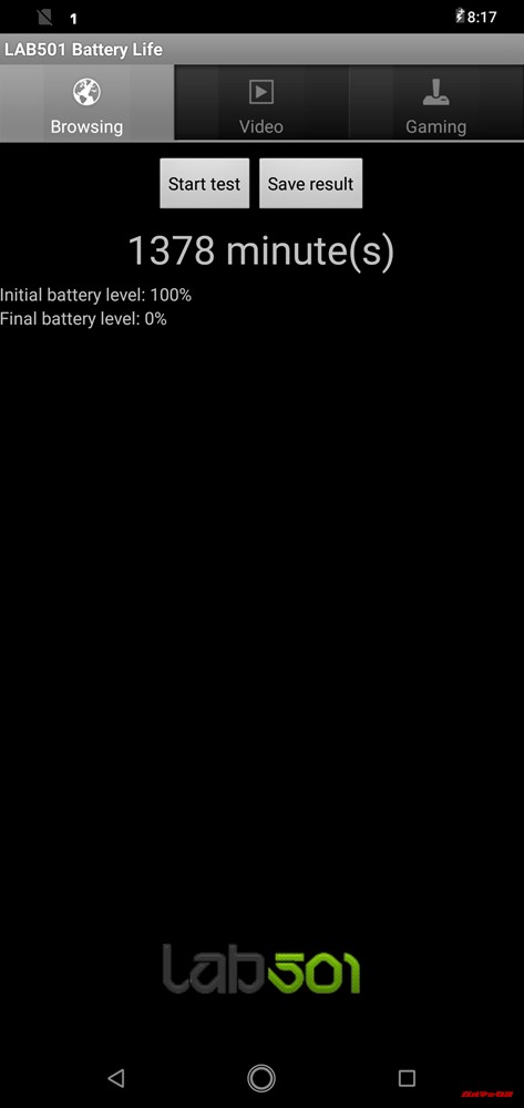 ▼バッテリー持ちの検証ではLAB 501アプリを利用して測定。このアプリは実際にWEBページを表示・スクロール・リロードを行い実際に利用に近い状態で測定が可能です。検証の結果、連続駆動時間は1378分(22時間58分)でスーパーウルトラ電池持ちが良いです。↓