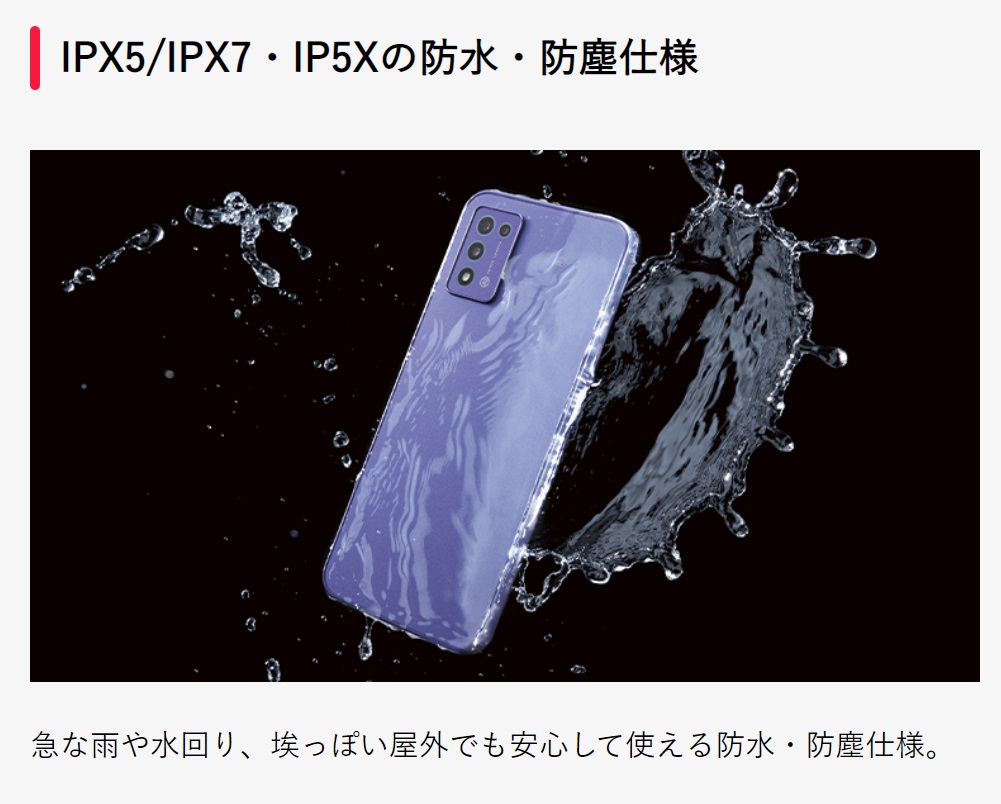 ▼防水防塵はIP57の生活防水クラスとなっており、雨などの軽い水濡れに耐性があるのもGood!水没は厳しいですが、無いよりはずっと安心。↓